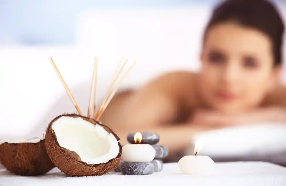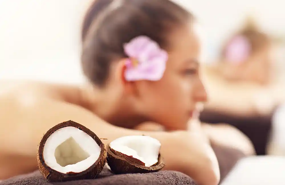 A tropical-inspired exfoliation with coconut oil and fine grains to soften and nourish your skin.