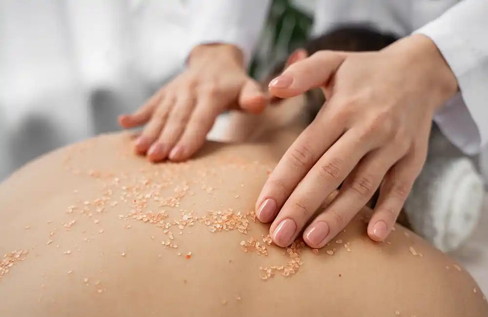 A mineral-rich body exfoliation using pure Red Sea salt to remove dead cells and reveal smooth, glowing skin.